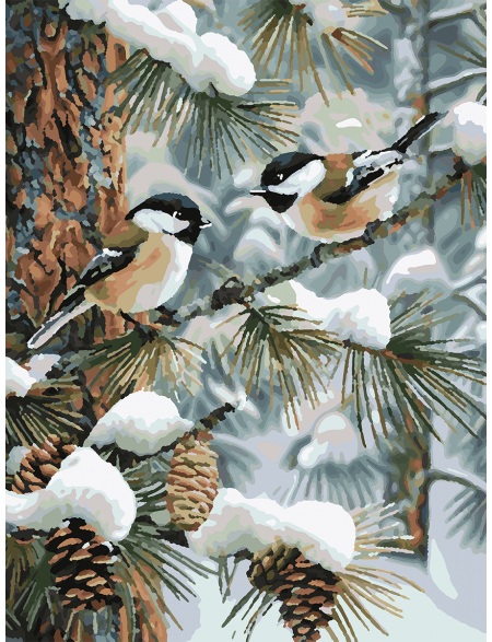 Картина по номерам без подрамника «Синички зимой» 90x70 см