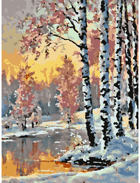 Картина по номерам без подрамника «Березы у воды» 40x30 см