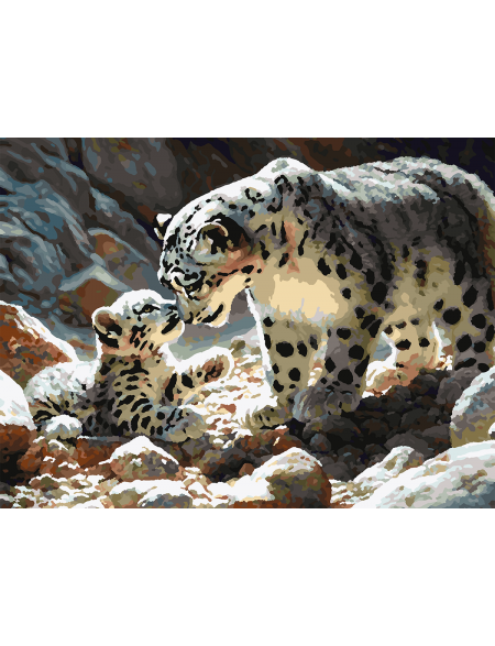 Картина по номерам без подрамника «Снежные барсы» 40x30 см