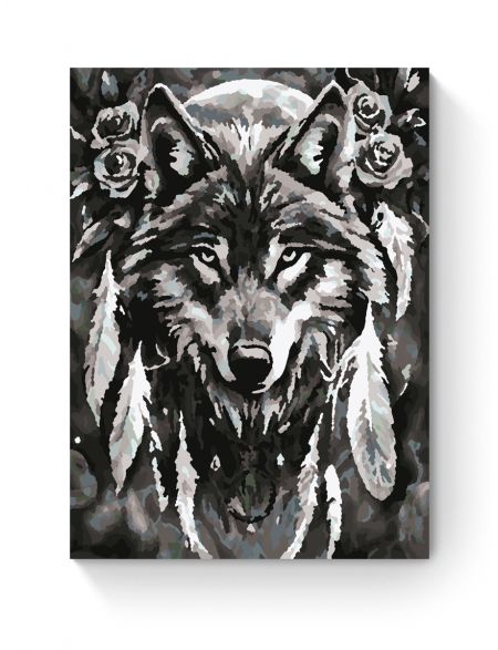 Картина по номерам на подрамнике «Волк и луна» 40x30 см