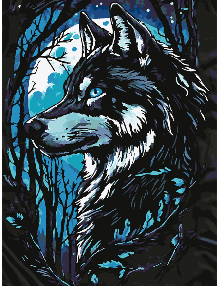 Картина по номерам без подрамника «Волк и луна» 70x50 см