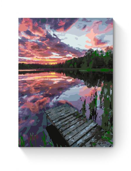 Картина по номерам без подрамника «Закат у озера» 50x40 см