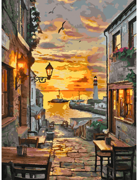 Картина по номерам без подрамника «Кафе у моря» 70x50 см