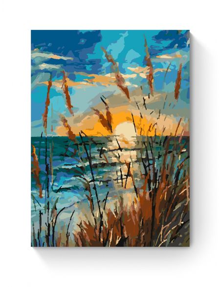 Картина по номерам на подрамнике «Закат на реке» 35x25 см