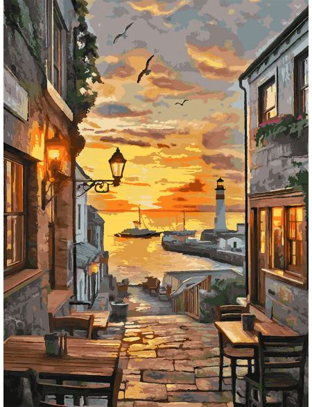 Картина по номерам без подрамника «Кафе у моря» 130x100 см
