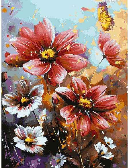Картина по номерам без подрамника «Красные цветы» 90x70 см