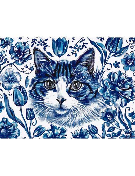 Картина по номерам без подрамника «Кошка Гжель» 90x70 см