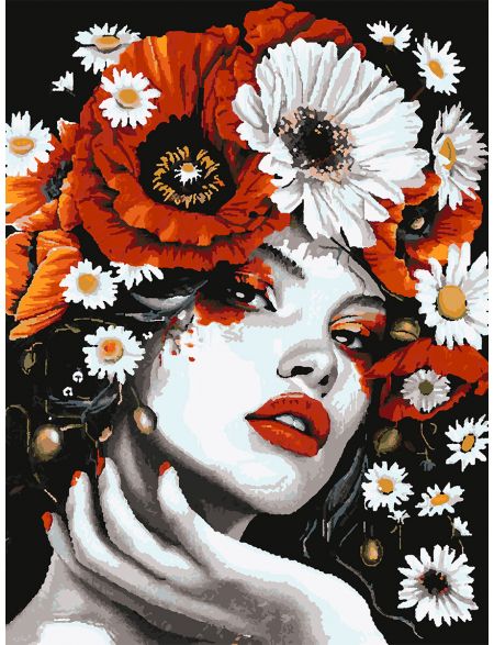 Картина по номерам без подрамника «Дева в маках» 90x70 см
