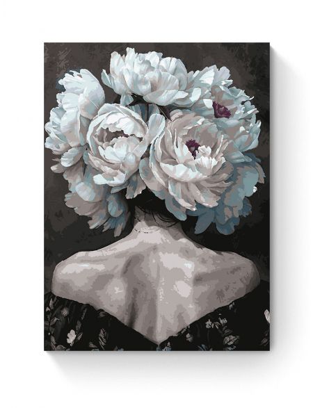 Картина по номерам на подрамнике «Леди в пионах» 90x70 см