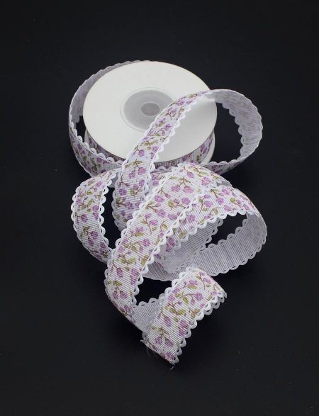 Лента репсовая 25 мм белая с сиреневыми розами 9,14 м