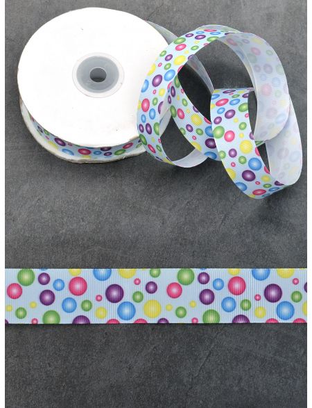 Лента репсовая 25 мм «Цветные шары» голубая 26 м