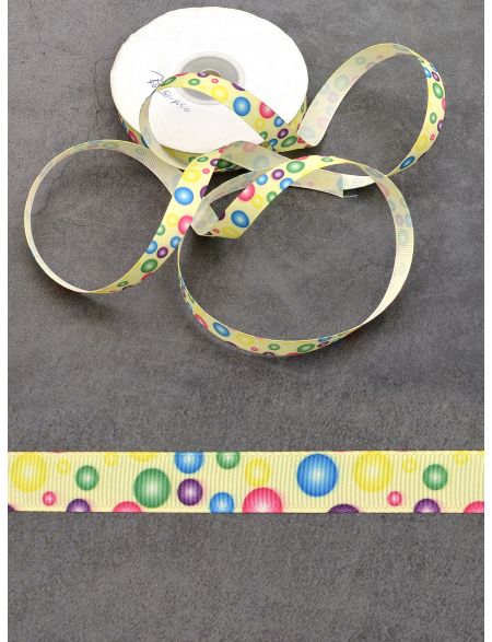 Лента репсовая 12 мм «Цветные шары» светло-лимонная 26 м