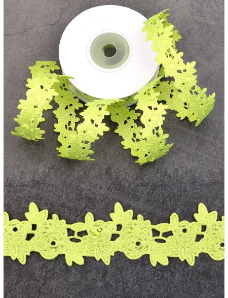 Лента ажурная «Розы» 15 мм зелёная, 9 м