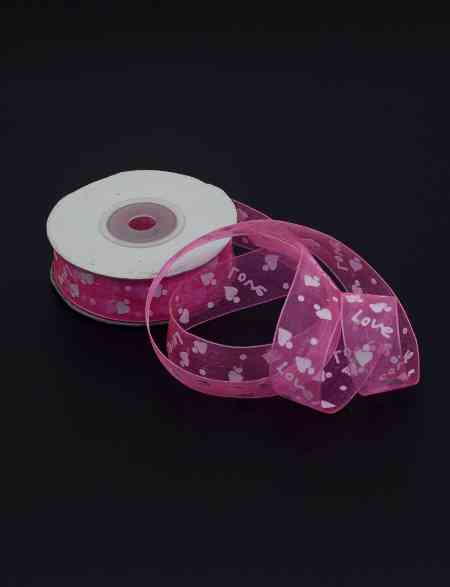 Лента атласная с рисунком «Розы» 25 мм розовая 22,4 м
