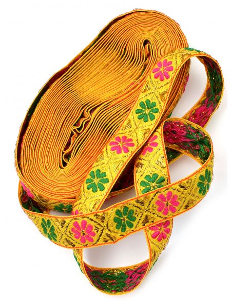 Лента жаккардовая «Цветы» 20 мм жёлтая с люрексом 6 м