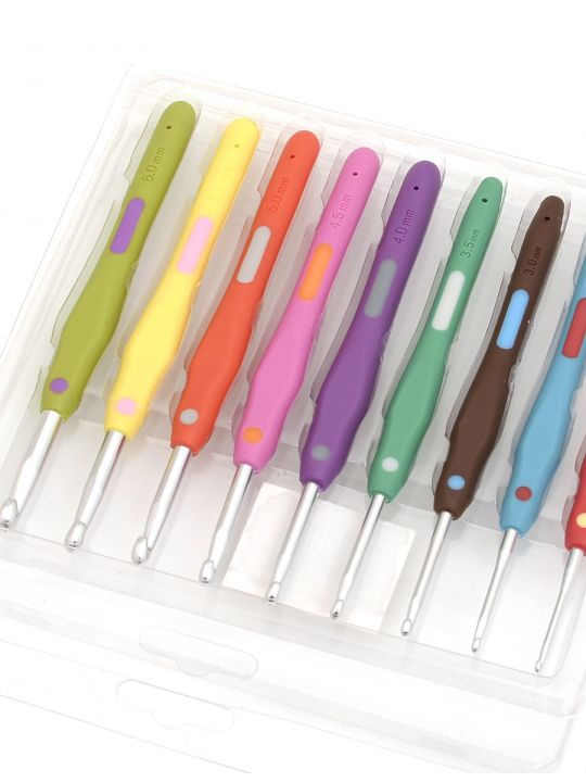 - в комплект входят 9 крючков для вязания диаметром от 2 до 6 мм.