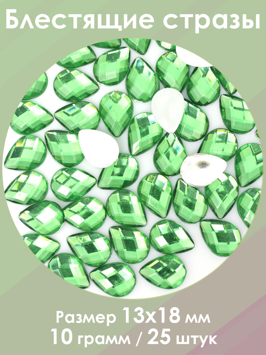 В одном пакете минимум 25 штук страз. За счёт удачного сочетания высококачественного прозрачного пластика и подклеенной с оборотной стороны фольги, стразы переливаются практически как стеклянные. Страз имеет семнадцать граней, что делает игру света более интересной. При этом стоят они существенно дешевле, поскольку сделаны из менее дорогих в сравнении со стеклом материалов. Используются для декорирования различных предметов одежды и интерьера. Кроме того могут применяться для составления картин алмазной мозаики.