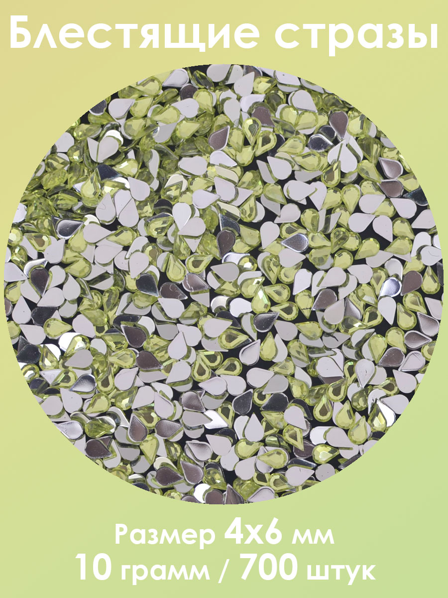 В пакете приблизительно 700* страз. За счёт удачного сочетания высококачественного прозрачного пластика и подклеенной с оборотной стороны фольги, стразы переливаются практически как стеклянные. При этом стоят существенно дешевле, поскольку сделаны из менее дорогих в сравнении со стеклом материалов. Используются для декорирования различных предметов одежды и интерьера. Кроме того могут применяться для составления картин алмазной мозаики