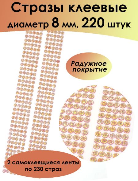 Стразы для рукоделия самоклеящиеся 8 мм.