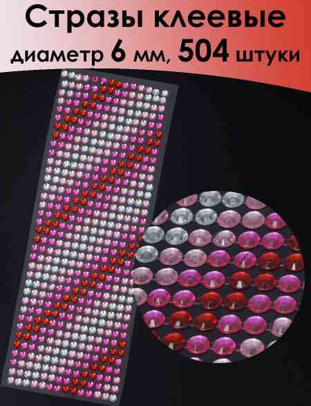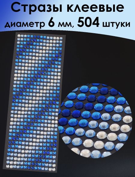 Стразы для рукоделия самоклеящиеся 6 мм.