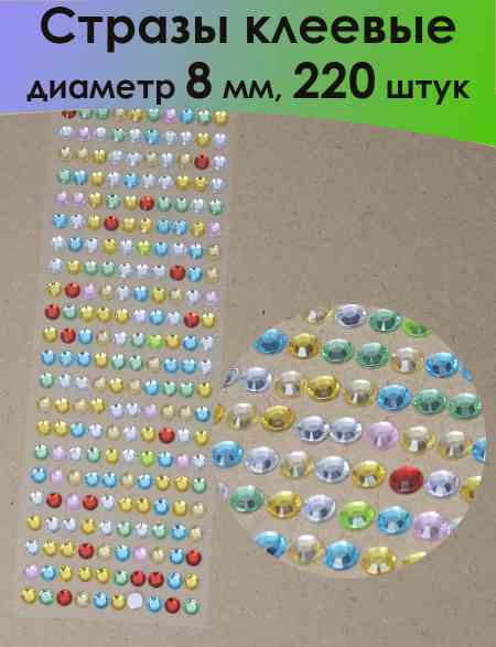 Стразы для рукоделия самоклеящиеся 8 мм.