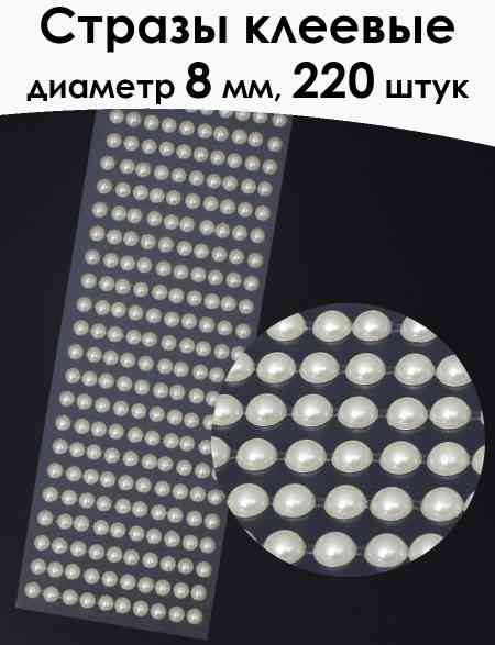 Стразы для рукоделия самоклеящиеся 8 мм.