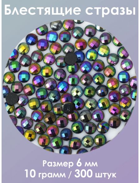Стразы холодной фиксации 6 мм. Упаковка 10 г. Q-26