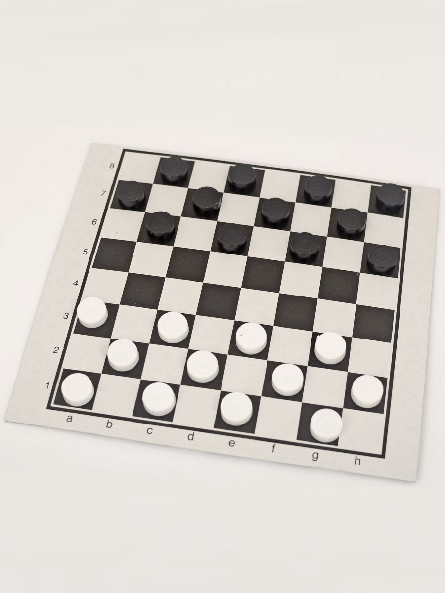 - картонное поле и пластиковые шашки диаметром 29 мм;