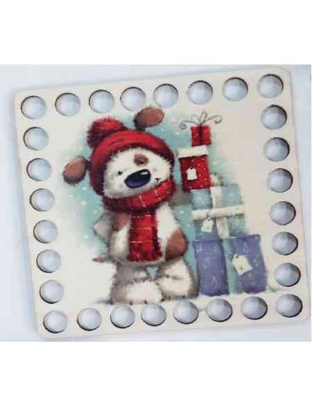 Донышко для вязания «Собачка Тедди с подарками» деревянное, 10 x 10 см