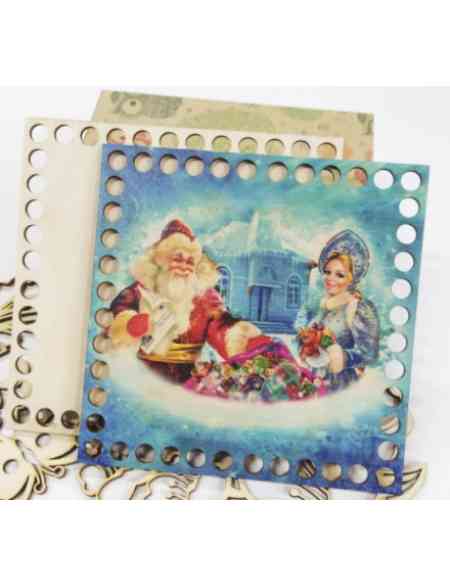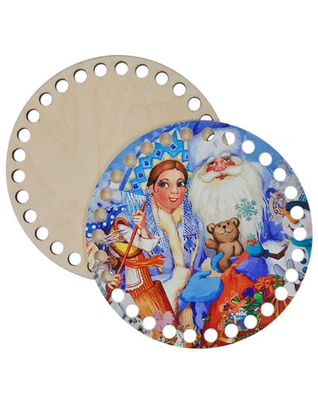 Донышко и крышка для вязания «Дед мороз и снегурка» деревянные, 15 x 15 см