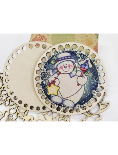 Донышки для вязания «Добрый снеговик» деревянные, 15 см