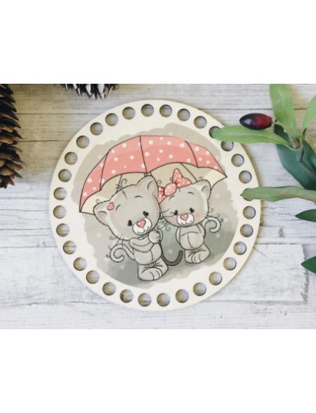 Донышко для вязания «Кошки под зонтиком» деревянное, 15 см