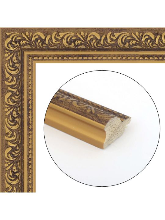 Багетная рамка изготовлена из пластика, имеются лепестки для закрепления работы. Стилизована под резное дерево. Доставляется в деревянном каркасе, который предотвращает повреждение рамки при транспортировке. Используется акриловое стекло, оно очень похоже на настоящее стекло, но не бьётся при транспортировке. На стекле имеется защитная плёнка от царапин с двух сторон, после вставки в рамку картины защитную плёнку со стекла нужно удалить. Рамка подойдёт для всех типов картин, алмазных мозаек, вышивок, а так же картин по номерам. В характеристиках товара указаны внутренние размеры рамки.