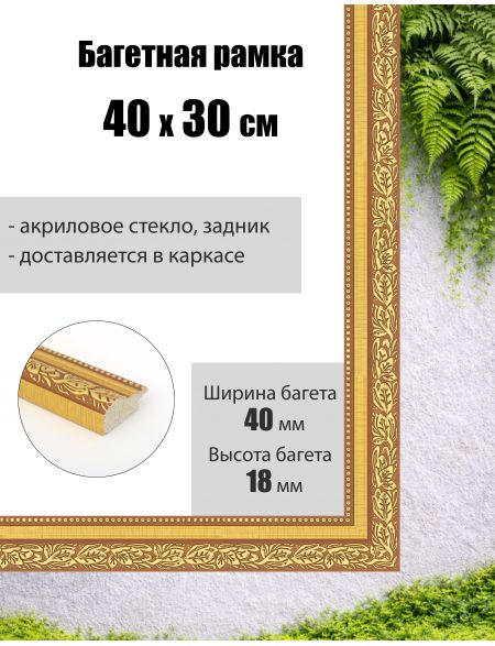Рамка багетная для картин со стеклом 40 x 30 см, РБ-018