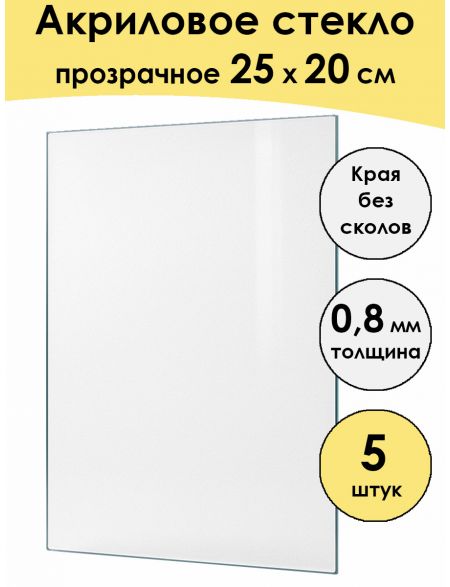 Стекло акриловое для рамки 25 x 20 см, 5 штук