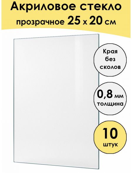 Стекло акриловое для рамки 25 x 20 см, 10 штук
