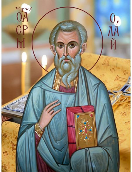 Алмазная мозаика без подрамника «Святой Ермолай Никомидийский» 50x40 см, 50 цветов