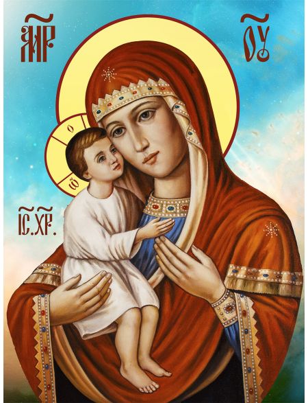 Алмазная мозаика без подрамника «Жировицкая икона Божией Матери» 130x100 см, 50 цветов