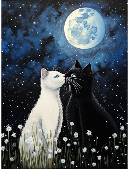Алмазная мозаика без подрамника «Пионы под луной» 130x100 см, 50 цветов