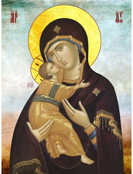 Алмазная мозаика на подрамнике «Владимирская икона Божией Матери» 90x70 см, 50 цветов