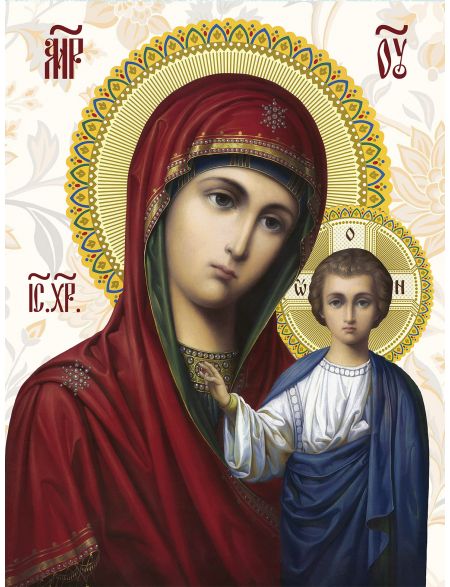 Алмазная мозаика без подрамника «Казанская икона Божией Матери» 90x70 см, 50 цветов