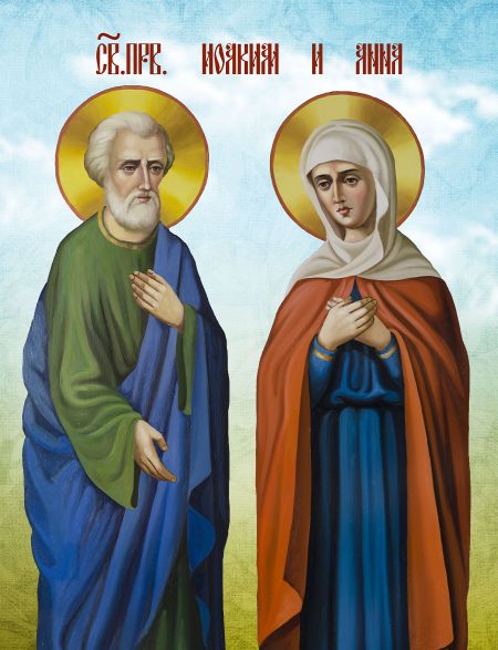 Алмазная мозаика без подрамника «Святые Иоаким и Анна» 70x50 см, 50 цветов