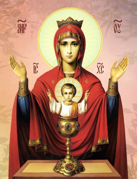 Алмазная мозаика на подрамнике икона Богородицы «Неупиваемая Чаша» 90x70 см, 50 цветов