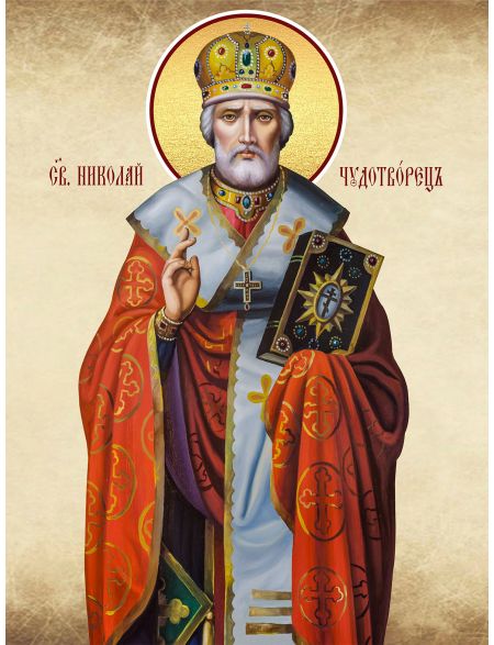Алмазная мозаика на подрамнике «Николай Чудотворец» 40x30 см, 50 цветов