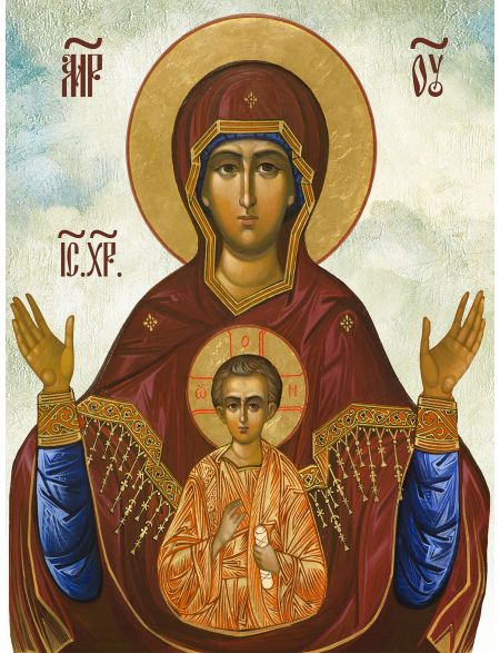 Алмазная мозаика на подрамнике Икона Божьей Матери «Знамение» 40x30 см, 46 цветов