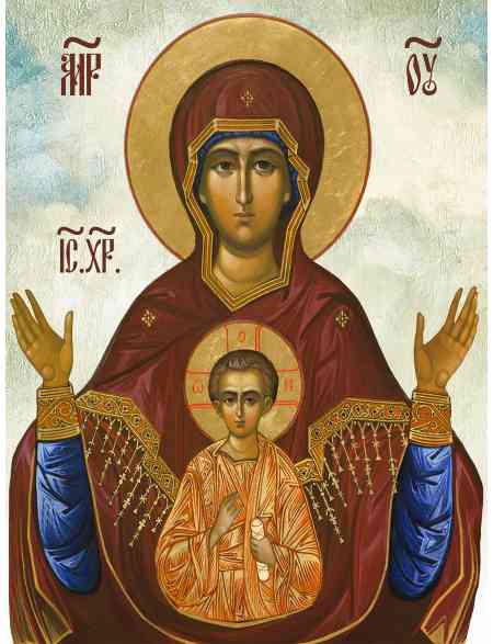 Алмазная мозаика без подрамника Икона Божьей Матери «Знамение» 50x40 см, 50 цветов