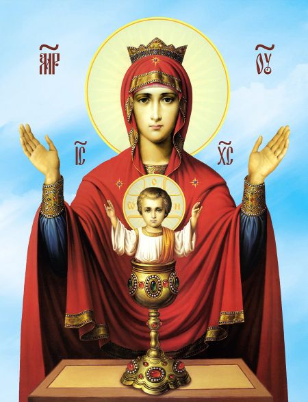 Алмазная мозаика на подрамнике икона Богородицы «Неупиваемая Чаша» 40x30 см, 48 цветов