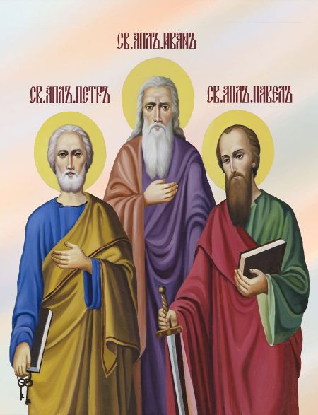 Алмазная мозаика на подрамнике «Апостолы Иоанн Богослов,Петр и Павел» 40x30 см, 47 цветов