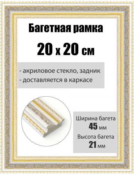 Рамка багетная для картин со стеклом 20 x 20 см, РБ-214