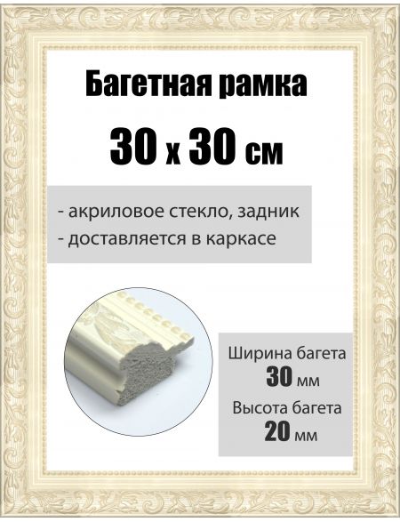 Рамка багетная для картин со стеклом 30 x 30 см, РБ-001